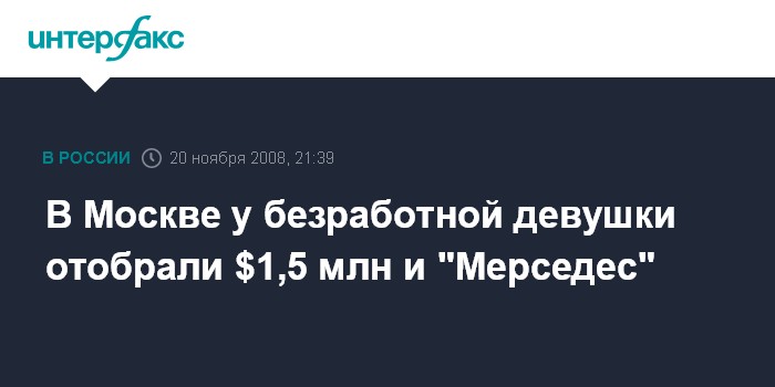 В Москве у безработной девушки отобрали $1,5 млн и "Мерседес"