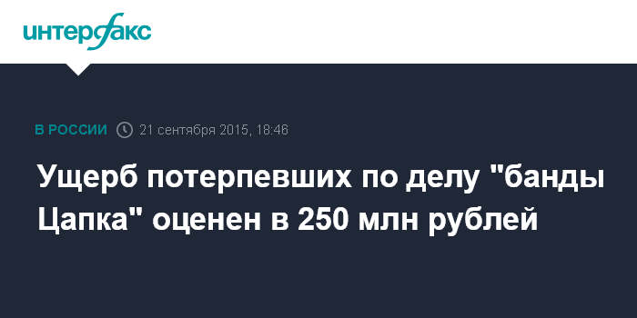 Ущерб потерпевших по делу "банды Цапка" оценен в 250 млн рублей