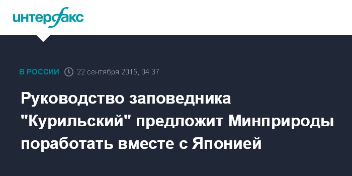 Москва. 22 сентября. INTERFAX.RU - Создать единый Курило-Хоккайдский природоохранный комплекс на базе трех российских особо охраняемых природных территорий (ООПТ) - заповедника "Курильский", заказников "Малые Курилы" и "Островной" - и японского национального парка "Сиретоко" (на о. Хоккайдо) предложит Минприроде РФ руководство государственного заповедника "Курильский".