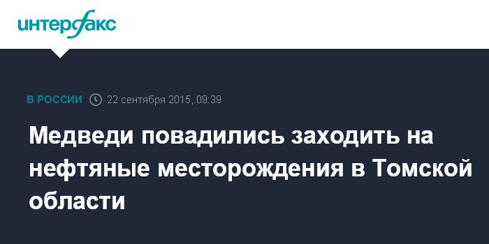 Москва. 22 сентября. INTERFAX.RU - Работники ряда нефтяных месторождений Томской области фиксируют в последние дни случаи появления медведей, сообщил агентству "Интерфакс" во вторник охотовед Александровского района Виктор Иванов.