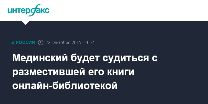 Мединский будет судиться с разместившей его книги онлайн-библиотекой