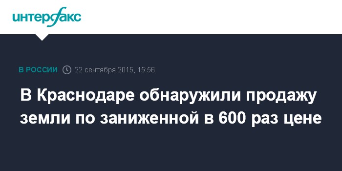 Москва. 22 сентября. INTERFAX.RU - Бизнесмены и чиновники в Краснодаре могут стать фигурантами уголовного дела о мошенничестве с земельными участками, проданными по заниженной в 600 раз цене, сообщили в пресс-службе Генпрокуратуры.