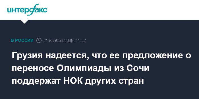 "Мы надеемся, что наше предложение перенести Олимпиаду, к примеру, в Австрию или Южную Корею поддержат НОК других стран", - заявил Нацвлишвили. При этом он отметил, что "грузинская сторона не имеет ничего против проведения Олимпиады в Сочи, но лишь при создании там соответствующих условий безопасности".