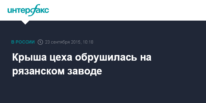 Москва. 23 сентября. INTERFAX.RU - Обрушение кровли в цехе на территории завода "Тяжпрессмаш" в Рязани произошло в среду утром, сообщили "Интерфаксу" в пресс-службе ГУ МЧС по Рязанской области.