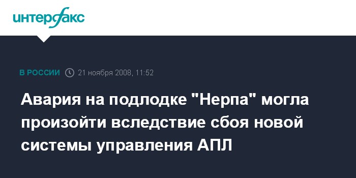 Москва. 21 ноября. INTERFAX.RU - Авария на атомной подводной лодке "Нерпа" 8 ноября 2008 года, в результате которой погибло 20 человек, могла произойти из-за недостаточно отлаженной новой системы управления подлодкой "Молибден".