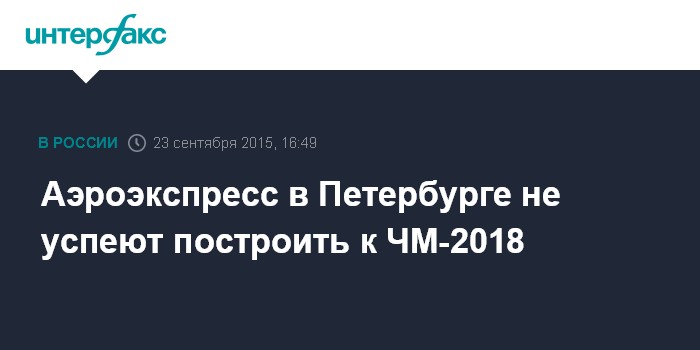 Москва. 23 сентября. INTERFAX.RU – Федеральные и городские власти уже не рассчитывают завершить строительство линии аэроэкспресса в Петербургеот Балтийского вокзала до аэропорта "Пулково" ко времени проведения Чемпионата мира по футболу 2018 года, сообщил замминистра транспорта Николай Асаул.