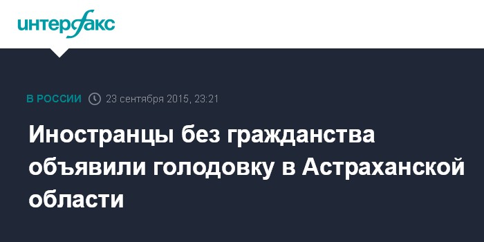 Москва. 23 сентября. INTERFAX.RU - Находящиеся в спецучреждении временного содержания для иностранцев УФМС по Астраханской области 10 лиц без гражданства объявили голодовку, сообщил "Интерфаксу" адвокат одного из голодающих Вадим Илов в среду.
