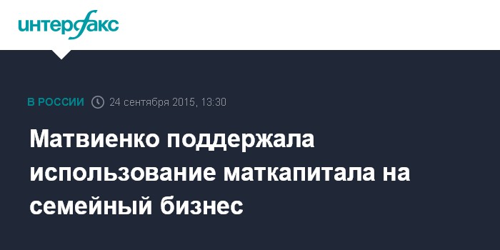 Москва. 24 сентября. INTERFAX.RU - Председатель Совета Федерации Валентина Матвиенко поддерживает идею о возможном использовании материнского капитала для открытия нового бизнеса.