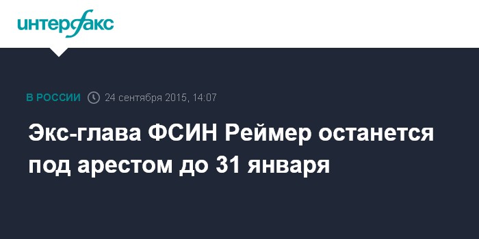 Москва. 24 сентября. INTERFAX.RU - Пресненский суд Москвы продлил до 31 января 2016 года арест бывшего главы ФСИН Александра Реймера, обвиняемого по делу о мошенничестве на 3 млрд рублей при закупке электронных браслетов.