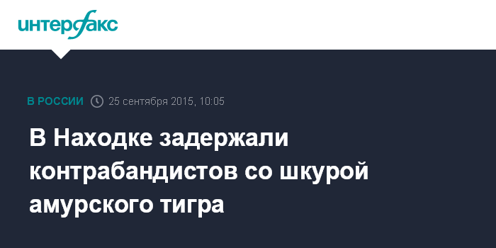 Москва. 25 сентября. INTERFAX.RU - Пограничники в приморском городе Находка пресекли попытку незаконной продажи шкуры краснокнижного хищника - амурского тигра.