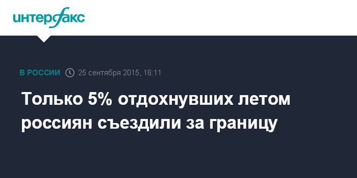 Москва. 25 сентября. INTERFAX.RU - Половина россиян (50%) провели летний отпуск на даче, и лишь 5% отпускников удалось съездить за границу, сообщили социологи.
