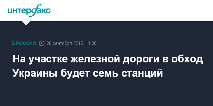 Москва. 26 сентября. INTERFAX.RU -Железная дорога в обход Украины будет насчитывать семь станций, сообщил в субботу журналистам вице-президент ОАО "РЖД" Олег Тони.
