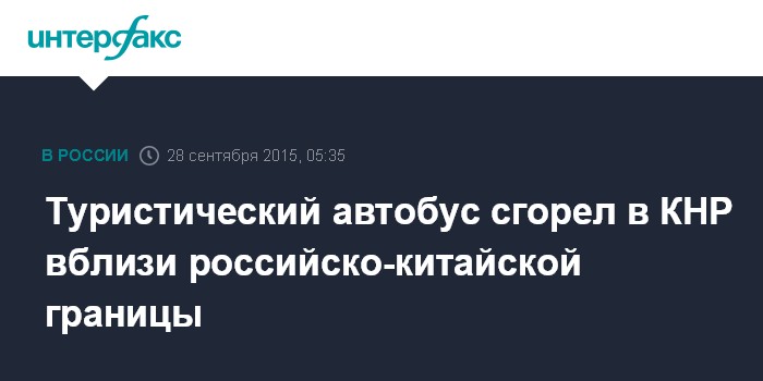 Москва. 28 сентября. INTERFAX.RU - Власти Приморья выясняют обстоятельства пожара в автобусе, перевозившего российских туристов, произошедшего вблизи приграничного китайского города Суйфэньхэ.