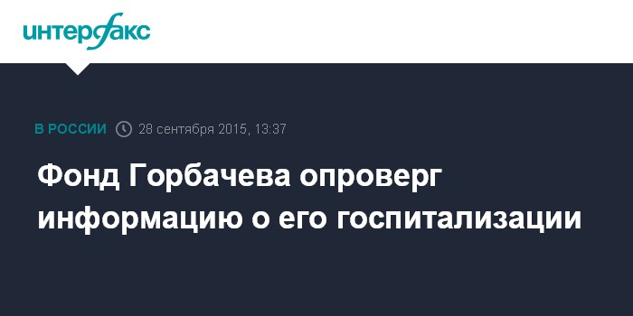Москва. 28 сентября. INTERFAX.RU - В "Горбачев Фонде" опровергли сообщения СМИ о срочной госпитализации бывшего президента СССР Михаила Горбачева.