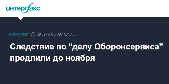 По его словам, срок предварительного расследования по делу о хищениях в "Оборонсервисе", возбужденному 14 октября 2012 года, продлен до 8 ноября 2015 года.