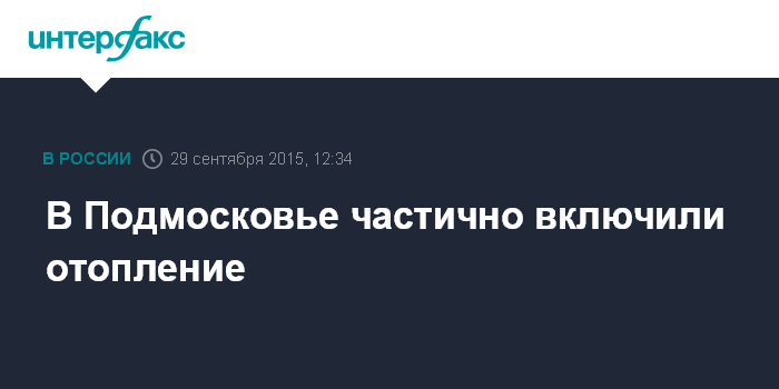 Москва. 29 сентября. INTERFAX.RU - Первыми муниципалитетами Московской области, частично включившими отопление для жилого фонда, стали Истринский, Павлово-Посадский и Раменский районы, сообщает пресс-служба зампреда подмосковного правительства Дмитрия Пестова.