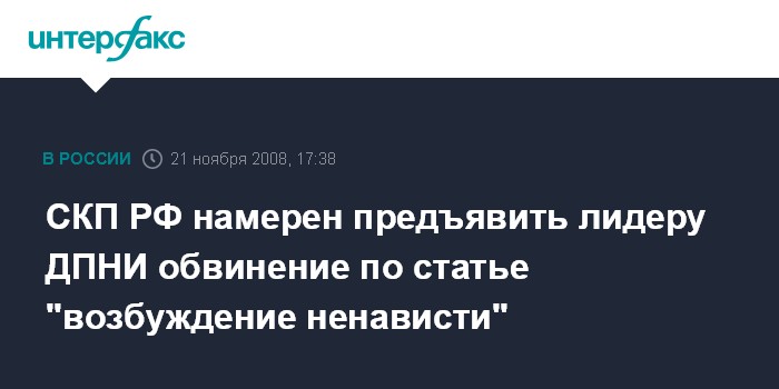 СКП РФ намерен предъявить лидеру ДПНИ обвинение по статье "возбуждение ненависти"