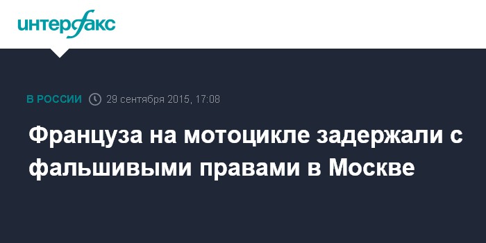 Москва. 29 сентября. INTERFAX.RU - Гражданина Франции подозревают в подделке прав на управление мотоциклом в России, сообщил "Интерфаксу" во вторник руководитель пресс-службы столичного главка полиции Андрей Галиакберов.