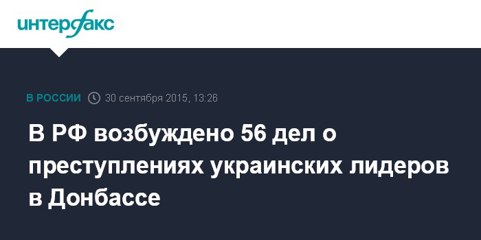 В РФ возбуждено 56 дел о преступлениях украинских лидеров в Донбассе
