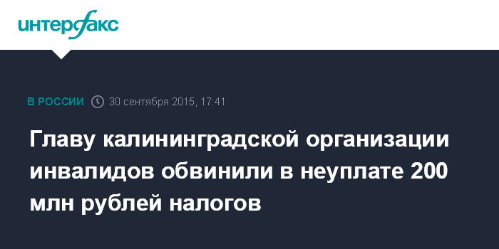 Главу калининградской организации инвалидов обвинили в неуплате 200 млн рублей налогов