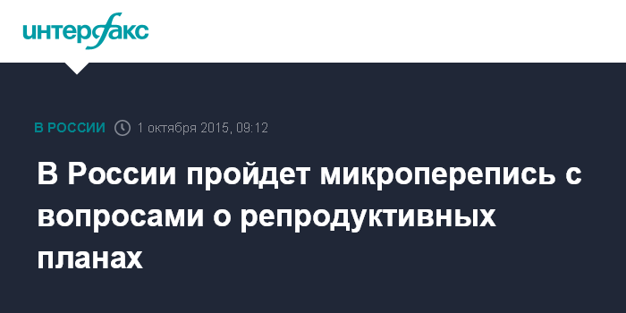 Москва. 1 октября. INTERFAX.RU - В ходе микропереписи населения, которая пройдет в России в течение октября, особое внимание будет уделено актуальным социально-экономическим и миграционным характеристикам населения, а также репродуктивным планам жителей страны.