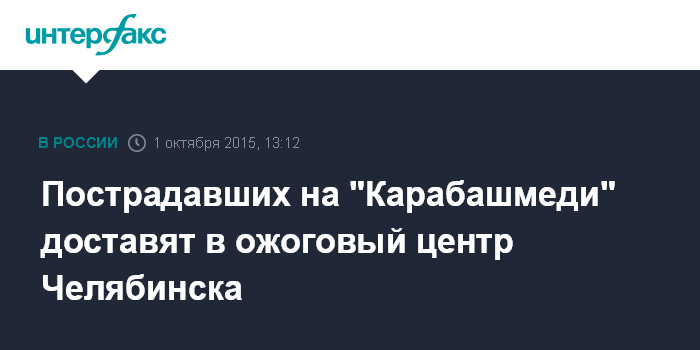 Москва. 1 октября. INTERFAX.RU - Пострадавшие работники предприятия "Карабашмедь" в городе Карабаш (Челябинская область) в ближайшее время будут отправлены в Челябинский ожоговый центр, сообщает в четверг пресс-служба министерства здравоохранения области.