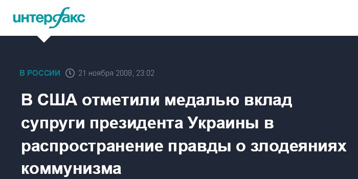 Медаль учреждена американским Фондом памяти жертв коммунизма. От президента Фонда профессора Ли Эдвардса награду принял в посольстве Украины в США посол Олег Шамшур, сообщает пресс-служба фонда "Украина 3000".
