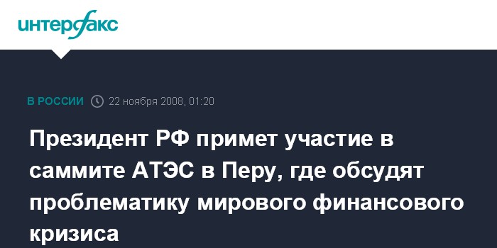 Президент РФ примет участие в саммите АТЭС в Перу, где обсудят проблематику мирового финансового кризиса