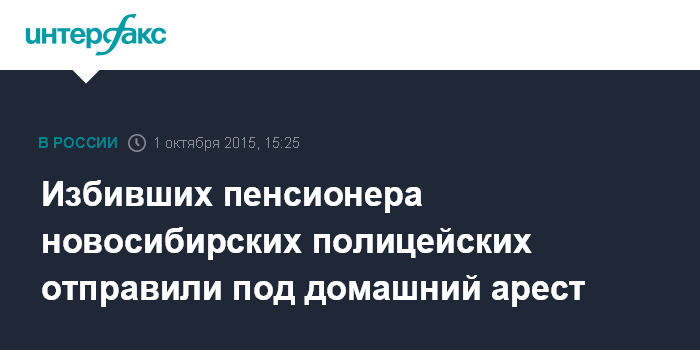 Москва. 1 октября. INTERFAX.RU - Калининский районный суд Новосибирска избрал меру пресечения в виде домашнего ареста двум полицейским, подозреваемым в избиении пенсионера.