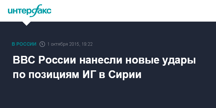 Москва. 1 октября. INTERFAX.RU - Российские самолеты в четверг совершили восемь вылетов по пяти объектам ИГИЛ, сообщил официальный представитель Минобороны РФ генерал-майор Игорь Конашенков.