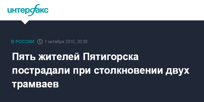 Москва. 1 октября. INTERFAX.RU - Два трамвая столкнулись в Пятигорске (Ставропольский край), есть пострадавшие, сообщил агентству "Интерфакс" источник в экстренных службах региона.