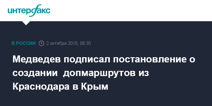 Москва. 2 октября. INTERFAX.RU - Премьер-министр РФ Дмитрий Медведев подписал постановление об организации дополнительных маршрутов перевозок пассажиров в Крым и обратно во время туристического сезона.