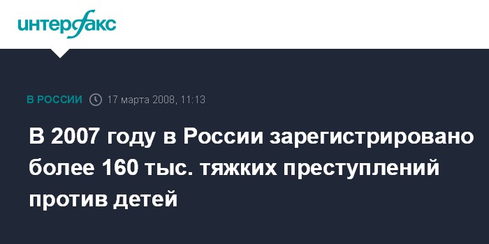 В 2007 году в России зарегистрировано более 160 тыс. тяжких преступлений против детей