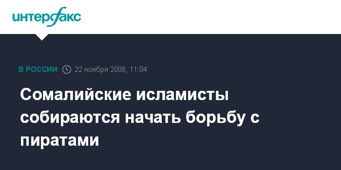 Москва. 22 ноября. INTERFAX.RU - Исламистские повстанцы в Сомали утверждают, что намерены покарать пиратов, которые угнали нефтяной супертанкер, принадлежащий Саудовской Аравии, сообщает в субботу британская телерадиокорпорация Би-би-си.