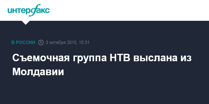 Москва. 3 октября. INTERFAX.RU - Съемочную группу телекомпании НТВ задержали в аэропорту Кишинева и выслали из страны, сообщил в субботу сайт телеканала.