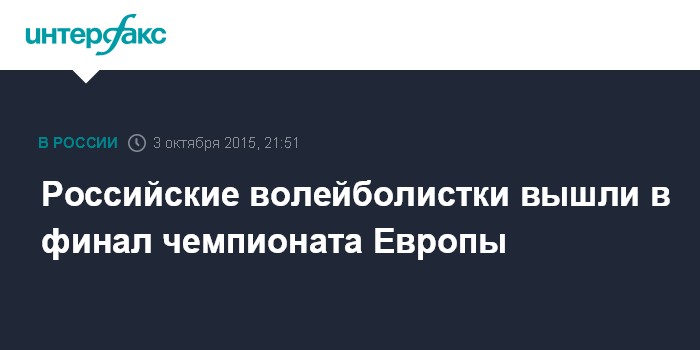 Москва. 3 октября. INTERFAX.RU - Женская сборная России по волейболу пробилась в финал чемпионата Европы, обыграв Сербию.