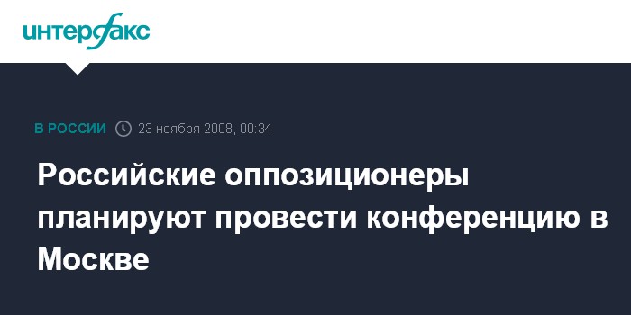 Москва. 23 ноября. ИНТЕРФАКС - Активисты российской оппозиции, как ожидается, проведут в воскресенье в Москве региональную конференцию новой общественной организации под рабочим названием "Солидарность".