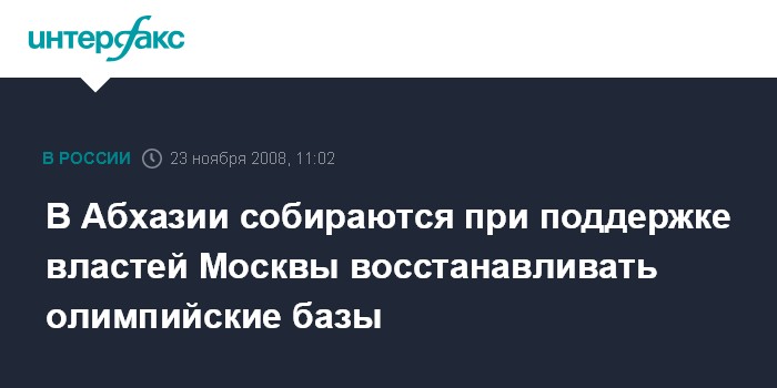 Сухуми. 23 ноября. INTERFAX.RU - Правительство Москвы намерено оказать Абхазии помощь в восстановлении бывшей советской олимпийской базы в селе Эшера и других спортивных объектов.