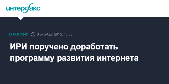 ИРИ был образован в конце прошлого года. Весной текущего года институту была поручена разработка стратегии (программы) долгосрочного развития интернета в России, которую ИРИ должен был представить на рассмотрение правительства РФ в октябре. "Мы хотим обобщить и проанализировать ваш опыт в различных областях интернет-индустрии и смежных рынков, - отмечал глава ИРИ Герман Клименко в ходе встречи клуба директоров института в мае текущего года. - Особенно тех из них, в которых государство подтормаживает, поскольку не видит приоритетности задач".