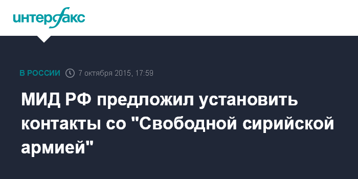 "По поручению президента России МИД информирует наших партнеров в странах, имеющих связи со "Свободной сирийской армией", о готовности российской стороны установить контакты с руководством этой структуры", - говорится в комментарии официального представителя МИД РФ Марии Захаровой, размещенном на сайте министерства.
