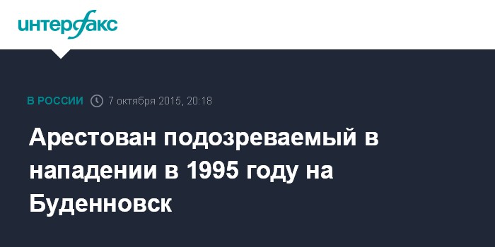 Москва. 7 октября. INTERFAX.RU - СКР сообщил об аресте фигуранта уголовного дела о вооруженном нападении на жителей города Буденновска Ставропольского края в 1995 году.