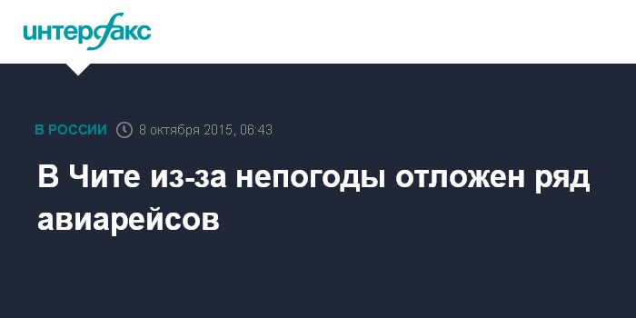 Москва. 8 октября. INTERFAX.RU - В Чите из-за непогоды отложен ряд авиарейсов, сообщили в четверг агентству "Интерфакс" в справочной аэропорта.
