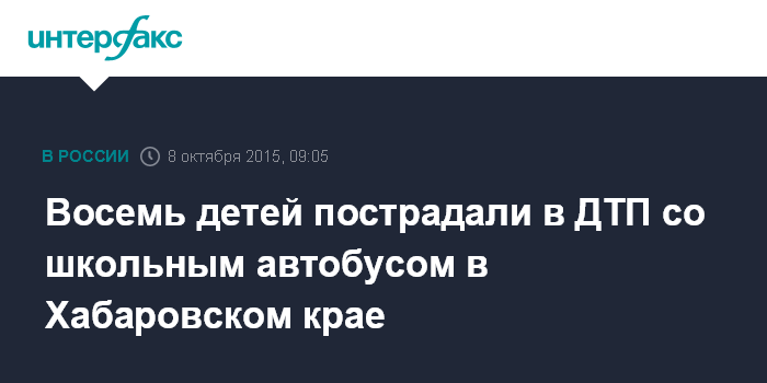 Москва. 8 октября. INTERFAX.RU – Восемь школьников получили ссадины и ушибы в результате опрокидывания автобуса с детьми под Хабаровском, сообщает в четверг пресс-служба ДВРЦ МЧС.