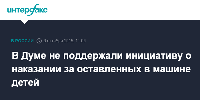Москва. 8 октября. INTERFAX.RU - Профильный думский комитет на заседании в четверг рекомендовал отклонить в первом чтении законопроект, предлагающий ввести административную ответственность для родителей, оставляющих ребенка в автомобиле.