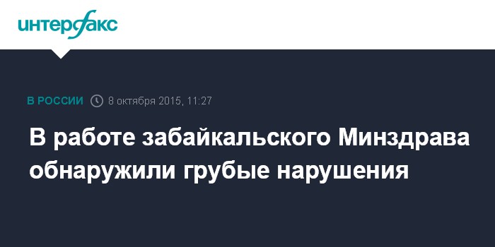 "Росздравнадзор выдал министерству здравоохранения Забайкальского края предписание с требованием принятия действенных мер по устранению выявленных нарушений в срок до 1 декабря 2015 года. Информация по контрольным мероприятиям передана в министерство здравоохранения РФ и Генеральную прокуратуру РФ", - сказала руководитель пресс-службы Росздравнадзора Ольга Малева.