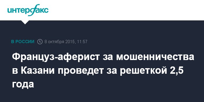 Москва. 8 октября. INTERFAX.RU - Вахитовский районный суд Казани вынес обвинительный приговор гражданину Франции Франку Анри Пиксиоли, признав его виновным в мошенничестве. Иностранец приговорен к 2,5 года лишения свободы в колонии общего режима, сообщили в четверг "Интерфаксу" в пресс-службе МВД по Татарстану.