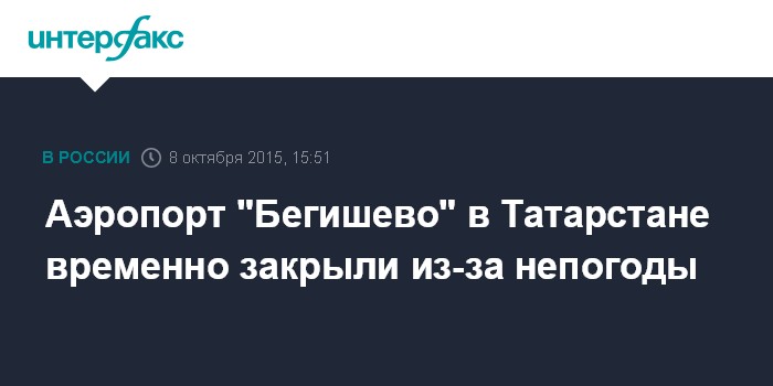 Москва. 8 октября. INTERFAX.RU - Международный аэропорт "Бегишево" в Татарстане до конца текущих суток прекратил прием и отправку самолетов.