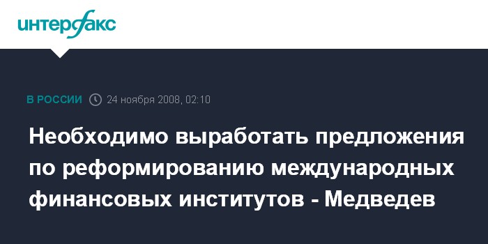 Необходимо выработать предложения по реформированию международных финансовых институтов - Медведев
