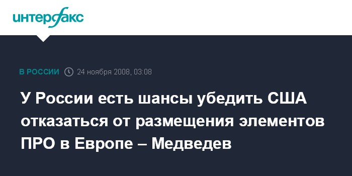 У России есть шансы убедить США отказаться от размещения элементов ПРО в Европе – Медведев