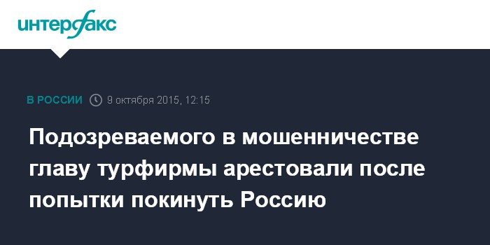 Подозреваемого в мошенничестве главу турфирмы арестовали после попытки покинуть Россию